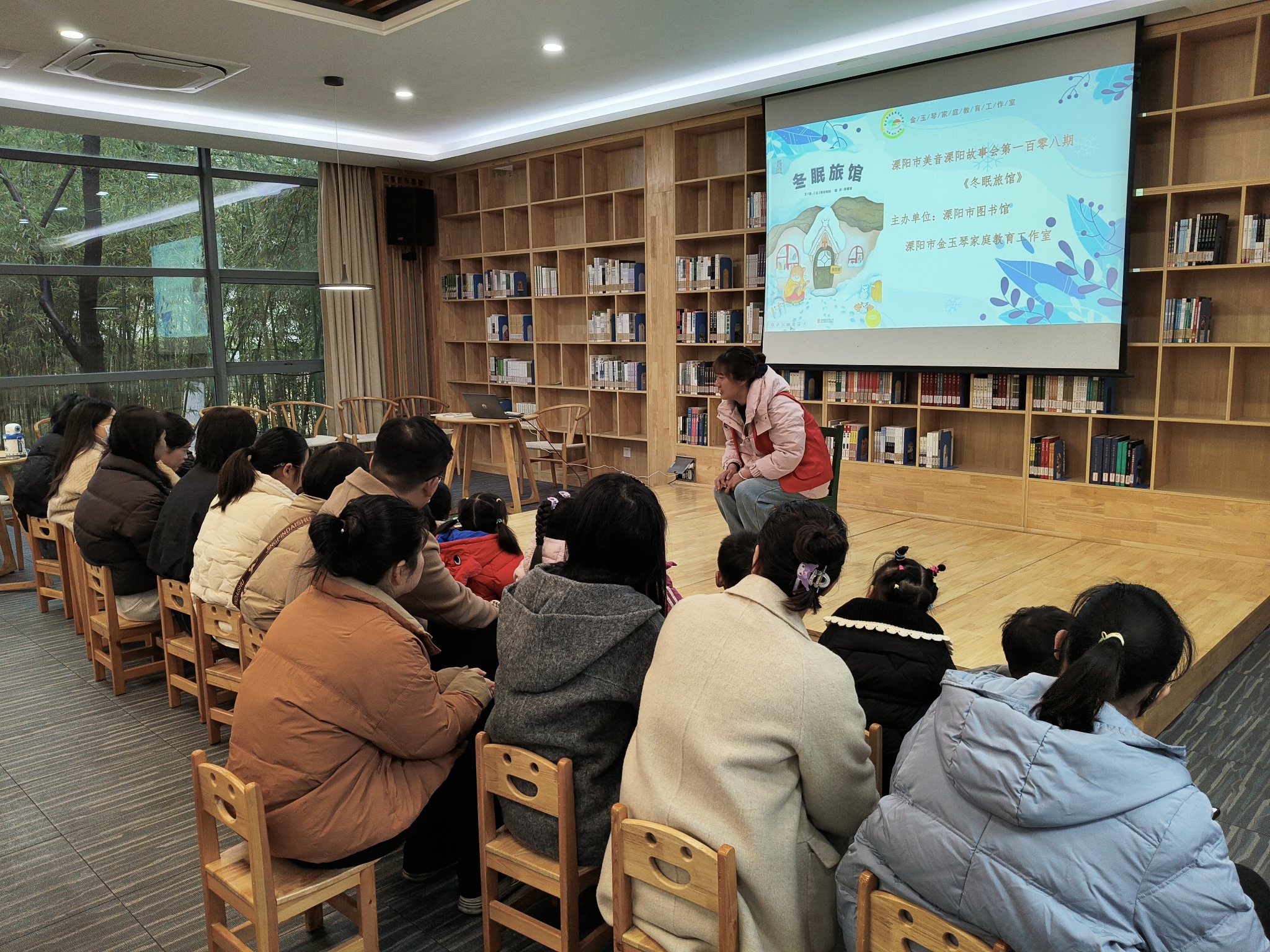 随后,费老师引导小读者聚焦绘本封面,开启导入环节。大家在现场热烈讨论,在轻松的对话中,好奇心被激发,孩子们仿佛被带入田鼠太太的奇妙世界。在接下来的亲子阅读环节中,参与读者在绘本阅读区域,逐页翻阅绘本,找细节、聊兴趣点。孩子们既懂了“动物各有冬眠方式”的道理,也感受到了亲子陪伴阅读的温暖。